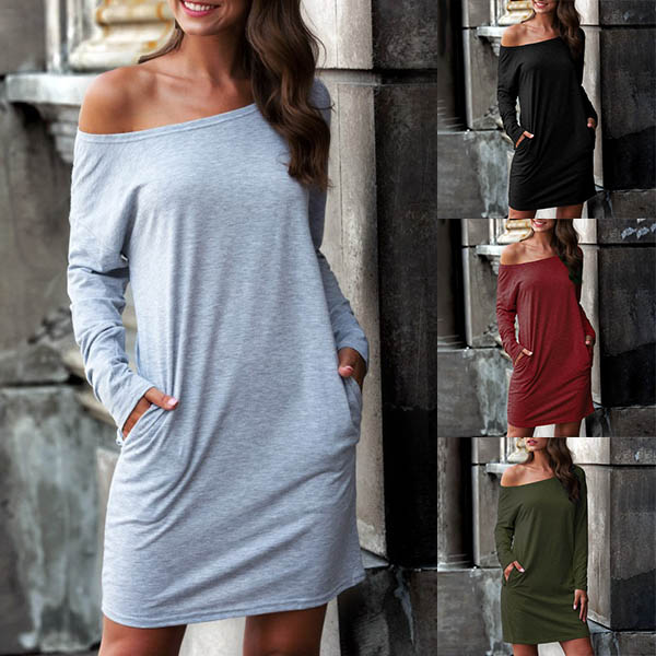 For these rushed mornings or some lazy days,this t-shirt dress can be a perfect solution. Solid color tone design makes it look simple,stylish yet generous,while the front pockets design will add some additional charm. Simply need to match with your favourite shoes,then you can be ready to go out!
