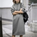 Simple Style Long Sleeve Slit Hem Solid Color Knit Dress