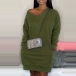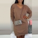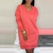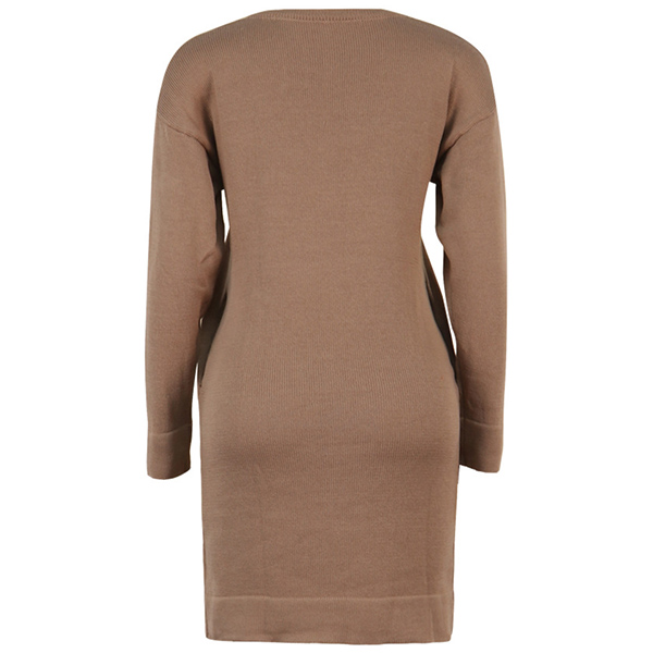 Hey,girls,you can trust in this dress to give you a cozy yet stylish day! Boasts a solid color,finished with long sleeve and v-neck design,this dress that bears a simple design style is perfect fit for your nigh walking and weekend strolling.