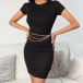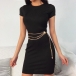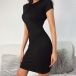 Simple Style Short Sleeve Round Neck Solid Color Slim Fit Dress