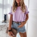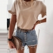 As for a simple,cozy and stylish daily look,you can have a try this t-shirt. Solid color tone design makes it look simple yet generous,while the unique cuff design can add some extra charm. All-match design allows to be matched with different style bottoms.