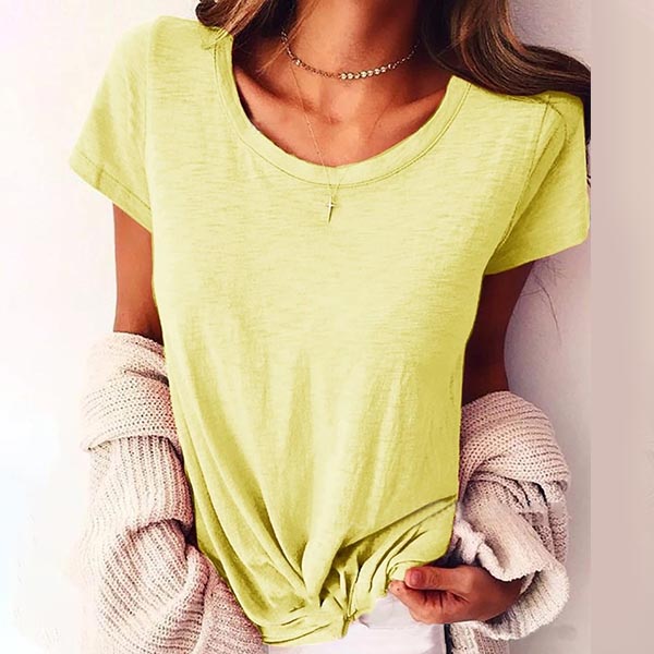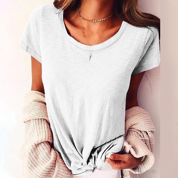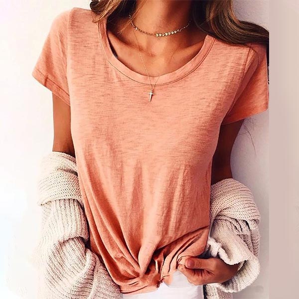 Combines of simple,cozy,stylish and all-match vibes,this t-shirt is worth to arouse your attention. Crafted in a solid color,with short sleeve and round neck design,this piece bears a simple design style,but it can offer you a comfortable day as well as offer you different matching styles. So why not buy one?