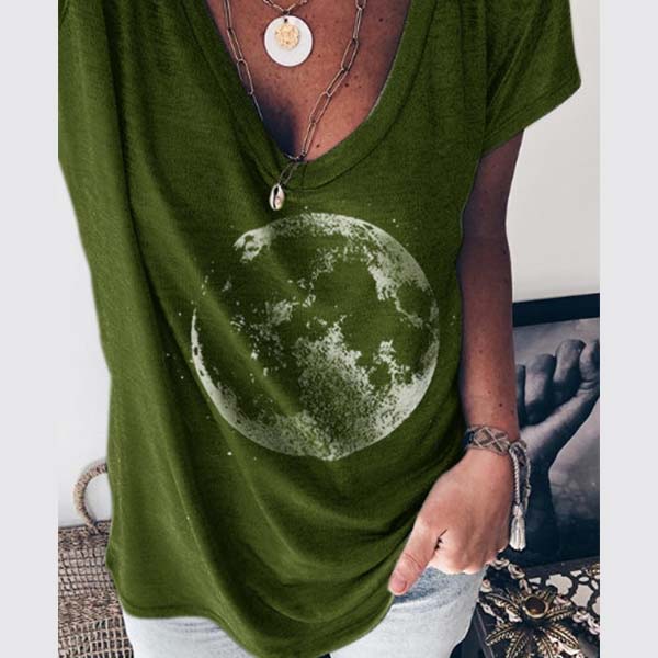 Simple Style Short Sleeve V-neck Printed T-shirt