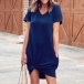 This dress that exudes simple,cozy yet stylish vibes is worth to have a place in your wardrobe. It boasts a solid color,with short sleeve and v-neck design,simple in design style,but it knows how to give you a cozy yet stylish style. You can make a knot at the hem if you wanna look more distinctive.