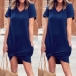 Simple Style Short Sleeve V-neck Solid Color Dress