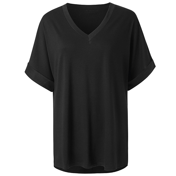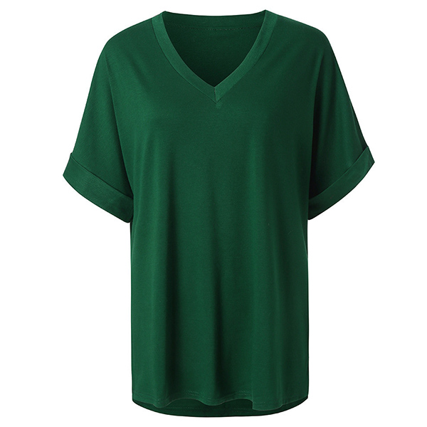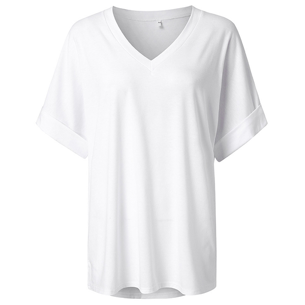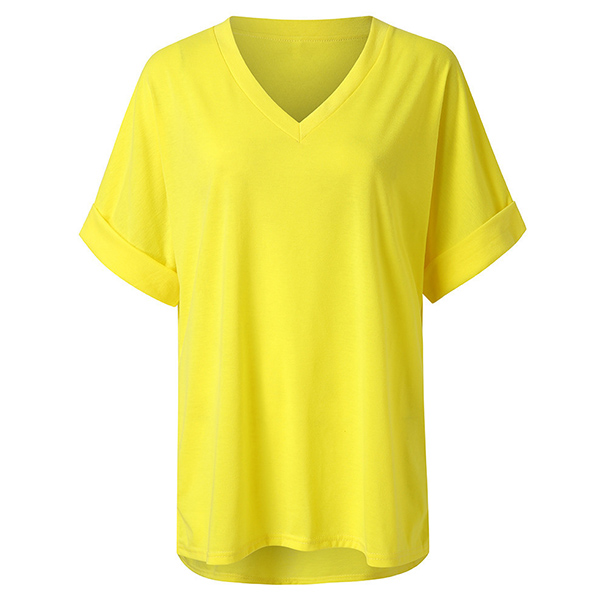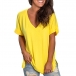 Simple Style Short Sleeve V-neck Solid Color Loose T-shirt
