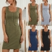 Simple Style Sleeveless Round neck Front-pocket Slim Fit Tank Dress