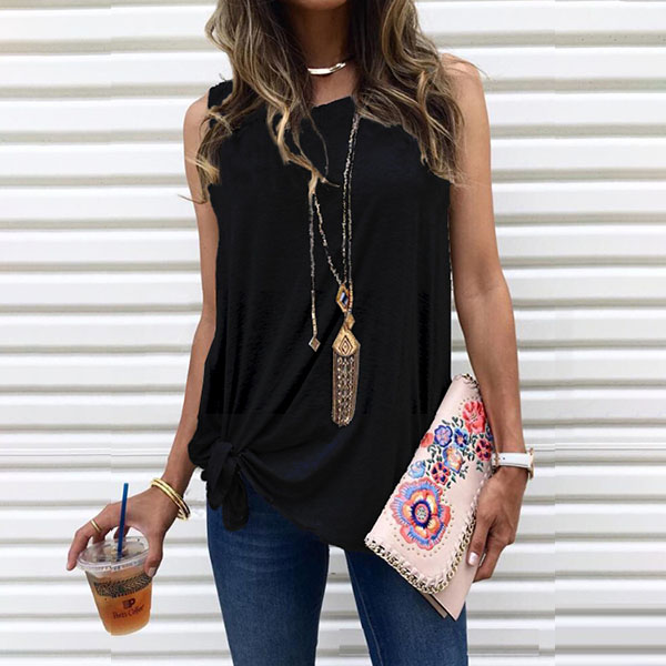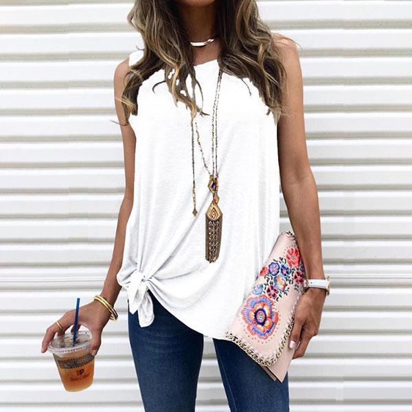 This simple style top is sure to give you a comfortable day with its soft fabric and loose silhouette. It comes with a solid color,finished with sleeveless and round neck design,this piece that exudes simple but cozy sense is worth to be your staple for your casual days.