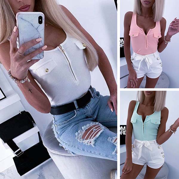 Like simple style piece? Then make your eyes focused on this top. It comes with a solid color,with sleeveless,round neck and a fit silhouette,this piece bears a simple design style,but it can offer you a comfortable day as well as many matching opportunities.