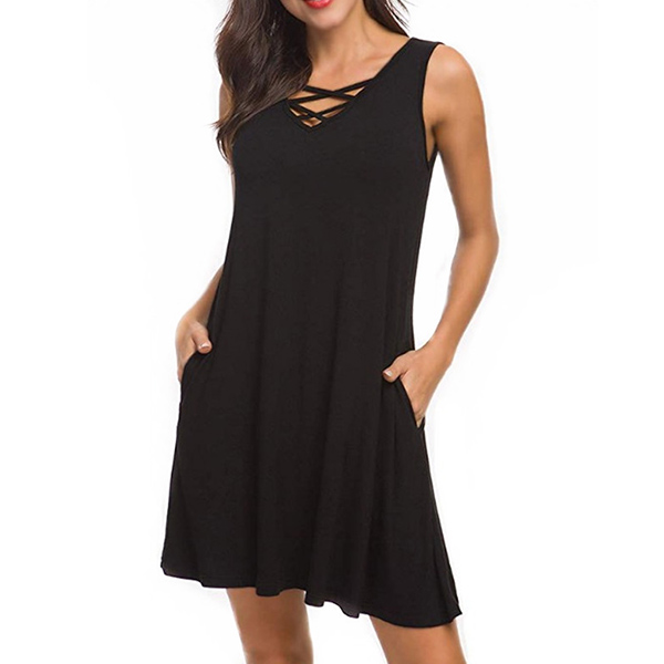 This sleeveless dress is the perfect addition to your summer wardrobe ensemble. Solid color tone design makes it look simple,stylish yet generous,while the v-neck design can exude your femininity. On your lazy days and casual weekends,this little piece is your perfect partner.