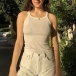 Simple Style Solid Color Round Neck Slim Fit Sling Top