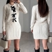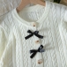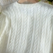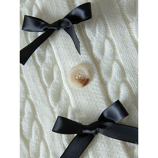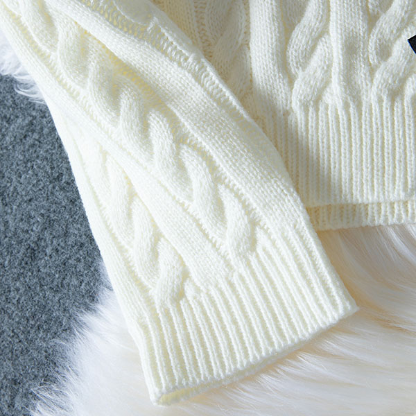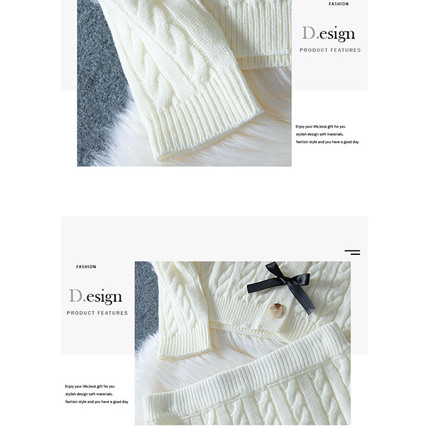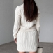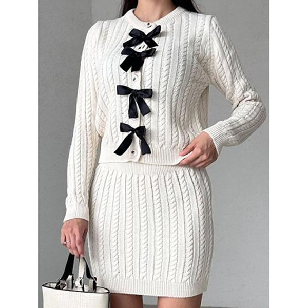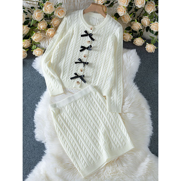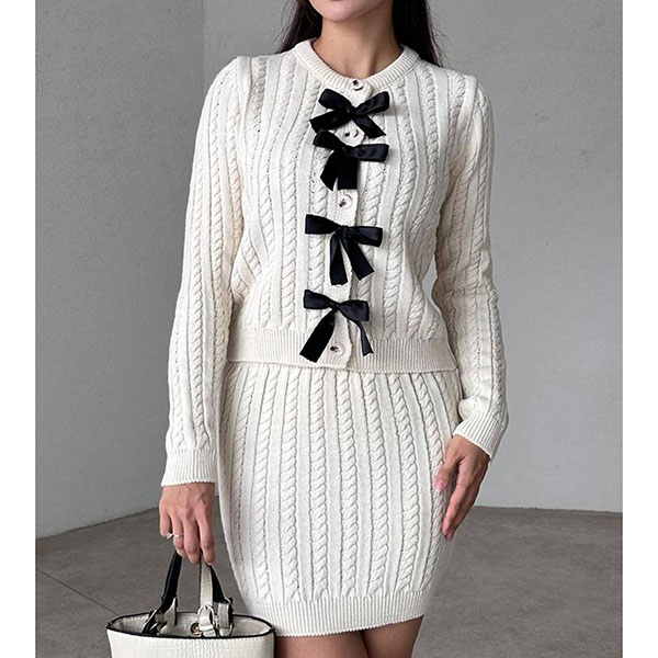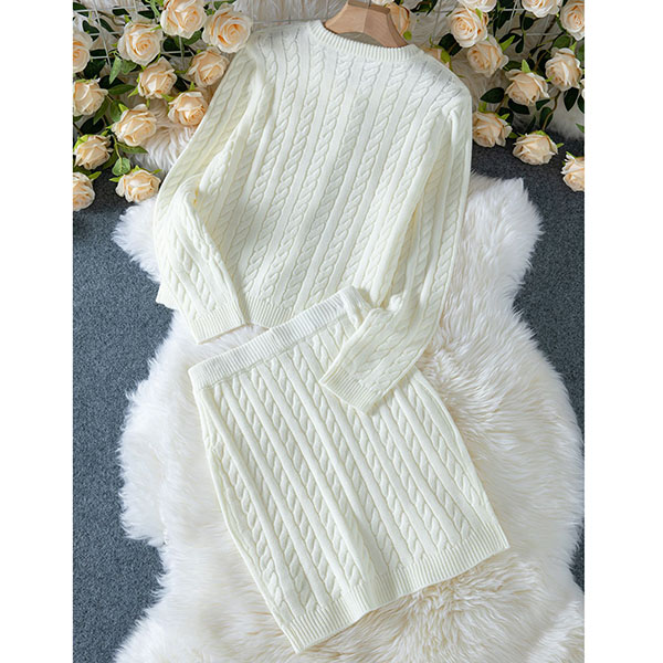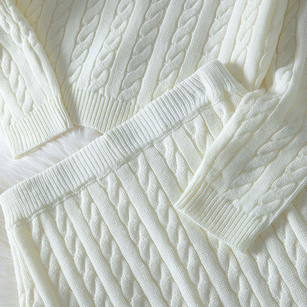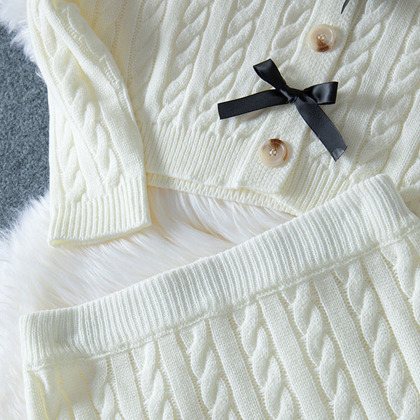 Kabelstickat tvådelat set i enfärgad stil – elegant kofta och stickad klänning