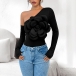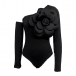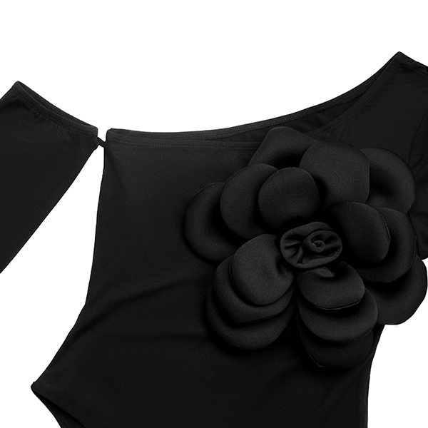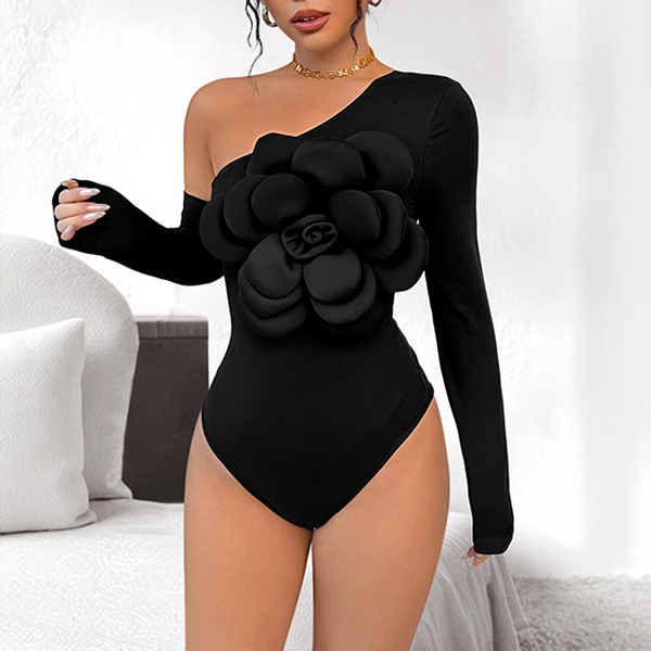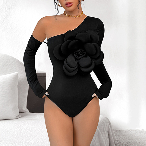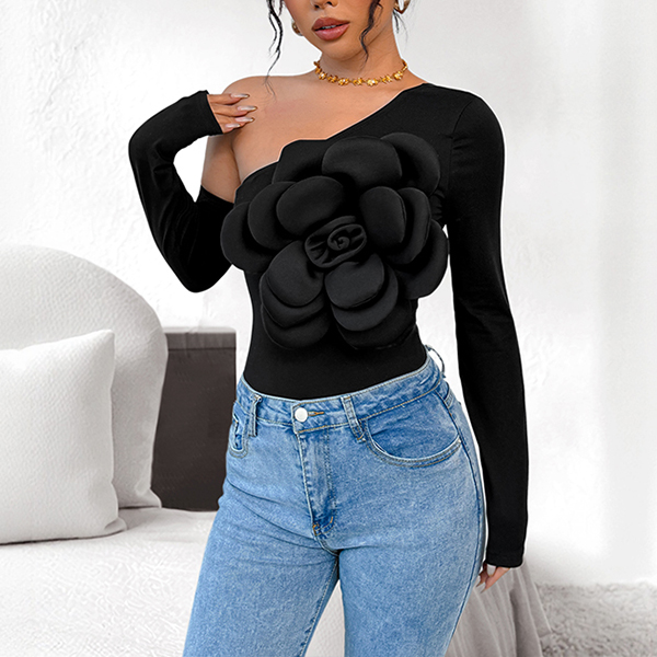 Moderiktig sneda axlar långärmad 3D-blommig body