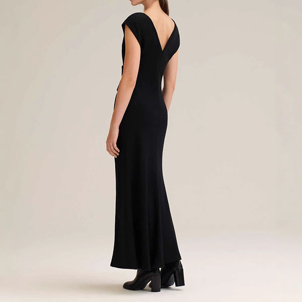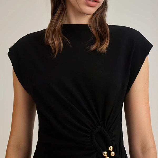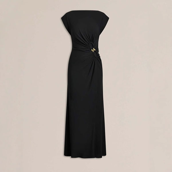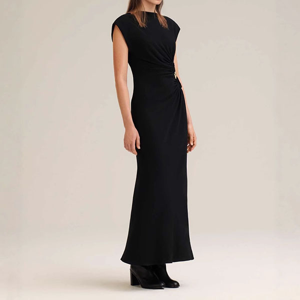 Solidfärgad plisserad maxiklänning med knappprydnad – enkel romantisk damklänning
