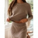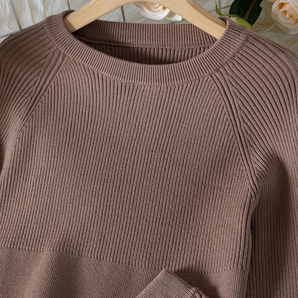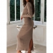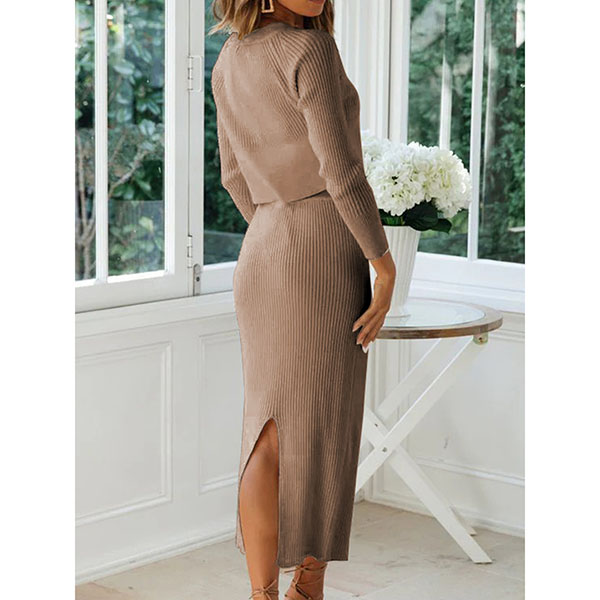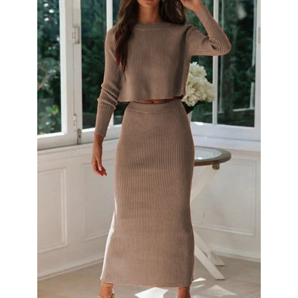 Tvådelat enfärgat stickat set med rundhalsad tröja och stilren kjol