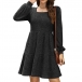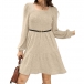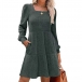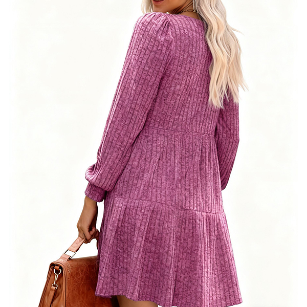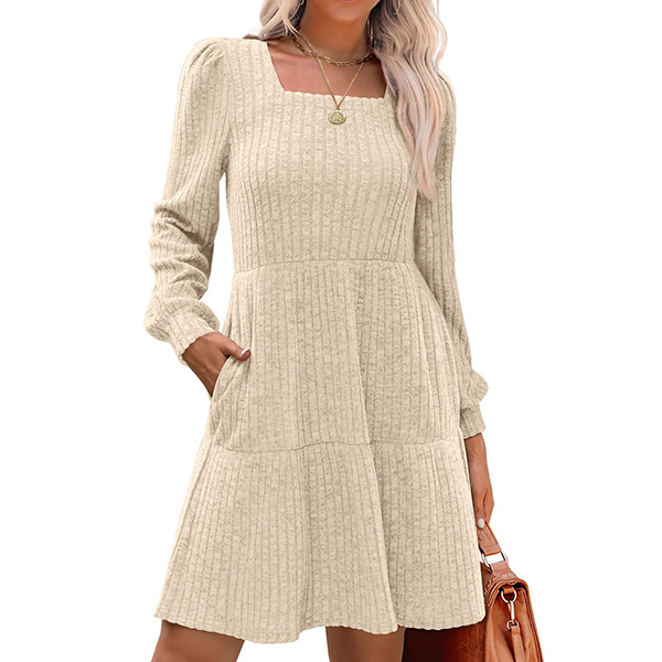 Miniklänning i ribbad trikå med fyrkantig halsringning - långärmad A-linje med fickor