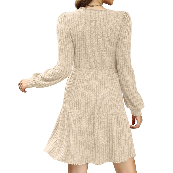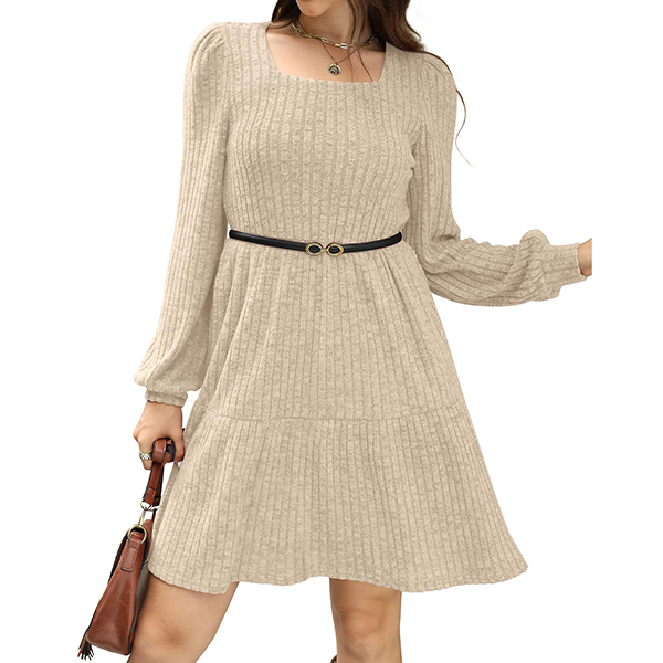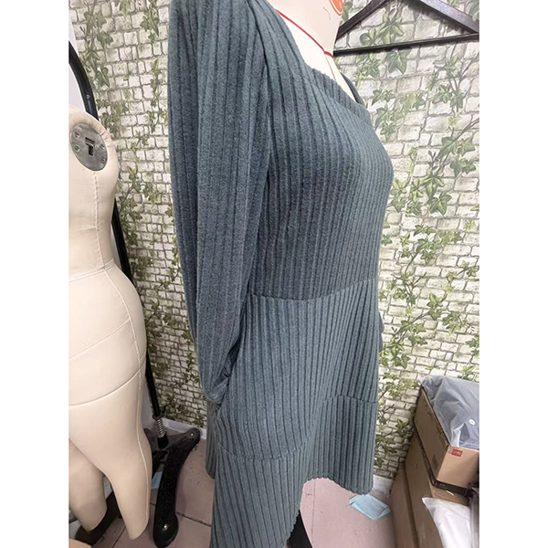Denna ribbade klänning har en modern fyrkantig halsringning, en texturerad ribbad konstruktion och en graciös A-linjeformad siluett för modern, elegant komfort. A-linjesiluetten ger böljande rörelse och smickrande proportioner, medan de funktionella fickorna erbjuder praktisk bekvämlighet och en samtida touch. Tillsammans visar plagget den vackra balansen mellan fyrkantig halsringning, strukturerad förfining och A-linjeformad elegans. Kombinera med stövlar och avslappnade accessoarer för en sofistikerad, modern look.