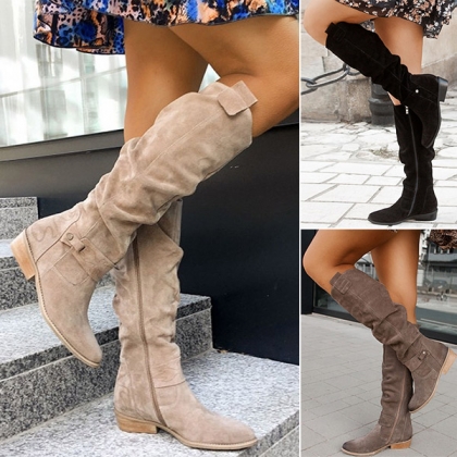 Trendiga gatumodestövlar med blockklack och sidodragkedja