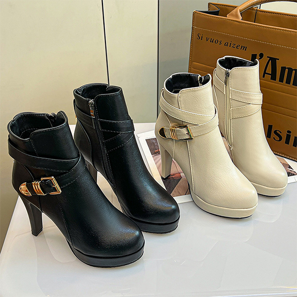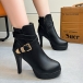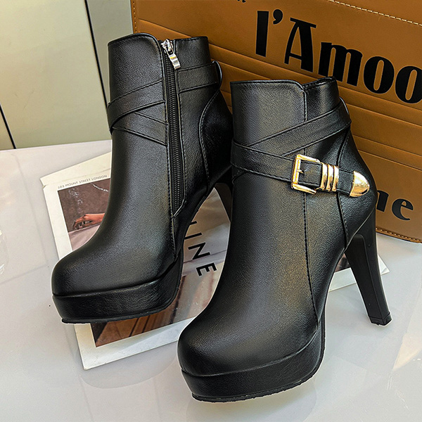Street Fashion Cross-Kriss högklackade plattform konstläder PU ankelstövlar