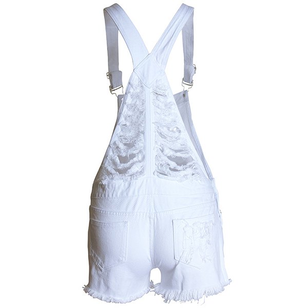 Street Style Frayed Hemline Ripped Denim Overall Jumpsuit