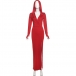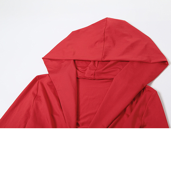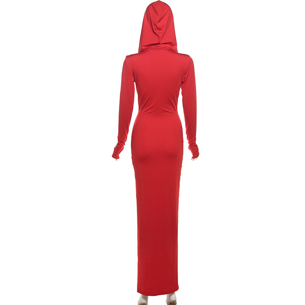 Upptäck vår iögonfallande maxiklänning som förenar urban streetwear med feminin elegans. Den draperade V-ringningen framhäver din siluett medan huvan tillför en avslappnad, modern street-känsla. En djärv sidoslits ger maximal rörelsefrihet och skapar en trendig, luftigt skuren look, och de långa ärmarna erbjuder mångsidig täckning året runt. Tillverkad i mjukt, stretchigt material som formar sig efter kroppen, sticker denna klänning ut genom sin unika kombination av komfort och stil. Perfekt att styla med vita sneakers och en jeansjacka för den ultimata street-komforten.