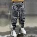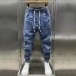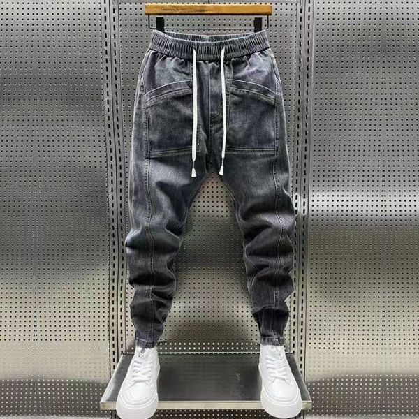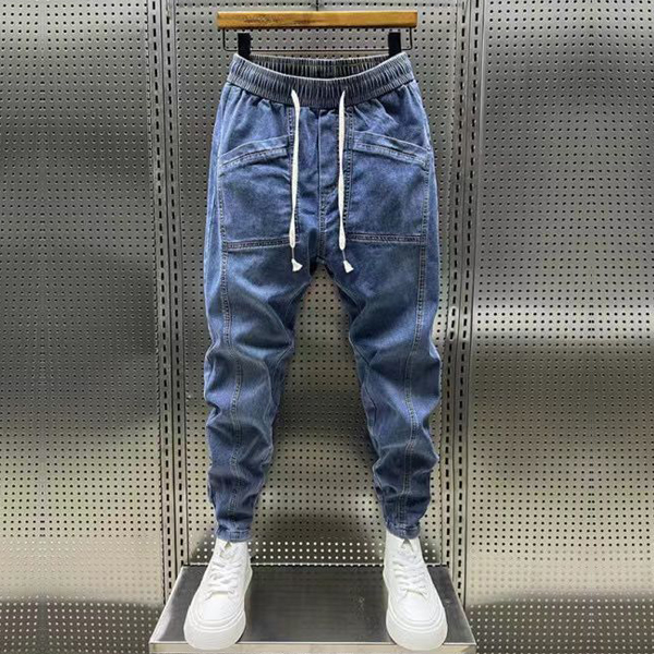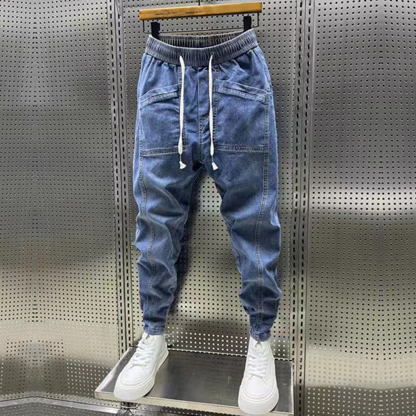 Mode på gatan: Elastiska midjelappar, dragkedja och fickor - Mänens gammaltvättade jeansbyxor