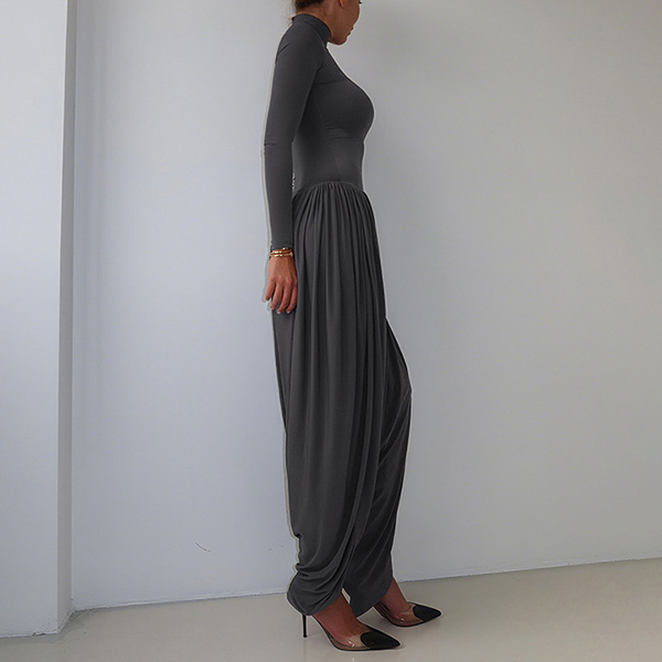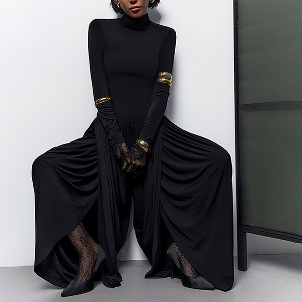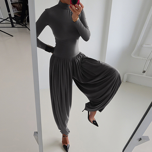 Upptäck den ultimata urbana jumpsuiten – en elegant fusion av sofistikerad design och streetwear-energi. Med sin höga, veckade krage, trendiga dragkedjedetaljer och praktiska sidofickor skapas en slank siluett samtidigt som du får smart förvaring. Det stretchiga, lättskötta tyget följer varje rörelse och garanterar maximal komfort, medan den justerbara dragskon i midjan framhäver din figur. Till skillnad från vanliga byxdresser utmärker sig vår jumpsuit med sina rena linjer, edgy accenter och rockiga touch, perfekt för både vardagsäventyr och nattliv. Gör varje dag till en catwalk och låt din stil tala för sig själv.