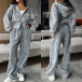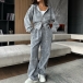 Håll dig snygg och bekväm i detta sportiga tvådelade set, bestående av en mjukisjacka med huva och matchande mjukisbyxor. Detta trendiga set kombinerar en avslappnad passform med modern stil, vilket gör det perfekt för vardagliga utflykter eller för avkoppling hemma. Ett måste i din garderob!