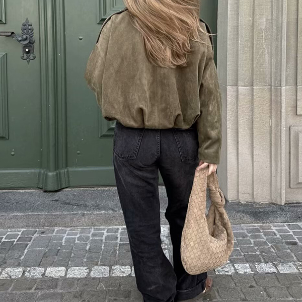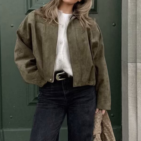 Modern mockajacka i urban chic som omdefinierar klassiska ytterplagg med moderna proportioner och streetinspirerad design. Ståkragen utan traditionella slag ger en ren, minimalistisk siluett, medan den korta längden framhäver midjan och passar perfekt till högmidjade byxor, kjolar eller som ett stilrent lager över klänningar. Tillverkad i högkvalitativt mockaliknande material med mjuk, värmande insida – det ultimata valet för övergångsväder. Den unika mixen av elegant minimalism och trendig urban känsla skiljer den från alla andra jackor på marknaden. Enkel att matcha med denim, kostymbyxor eller klänning för en både sofistikerad och avslappnad look.