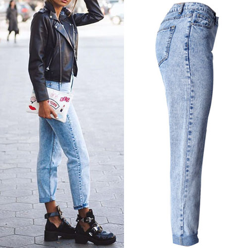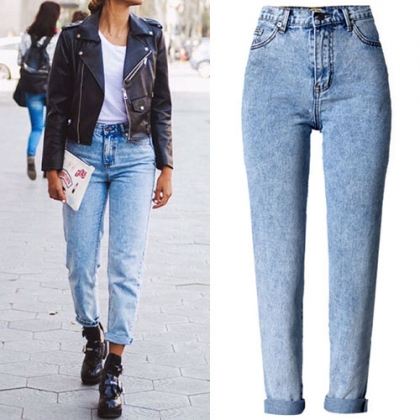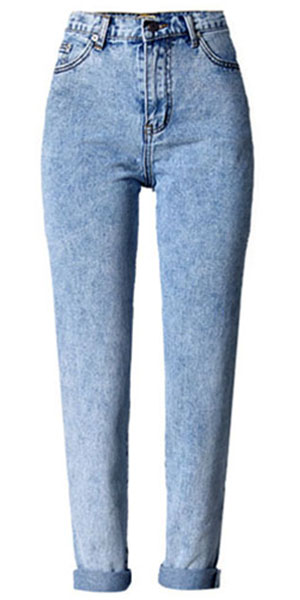 This piece has high waist and roll-up hem design complemented with a loose silhouette to give a