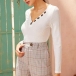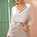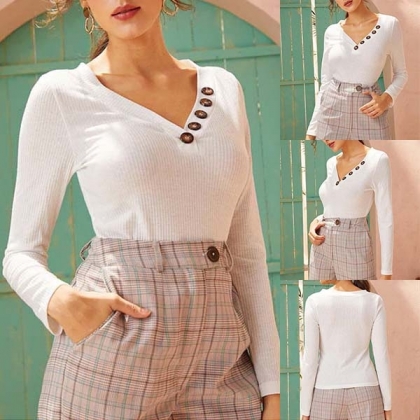 Expertly tailor from ribbed knitted fabric for hug your curves, feature V-neckline with button accent