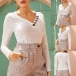 Want to inject your wardrobe with some effortless chic? Consider wearing this long sleeve knit top.
