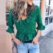 Sweet Style Half Sleeve Round Neck Ruffle Printed Top