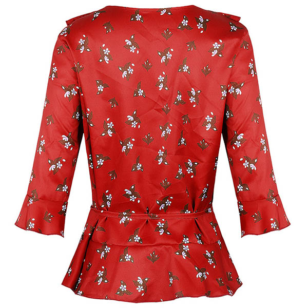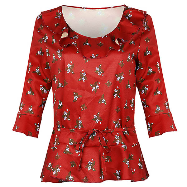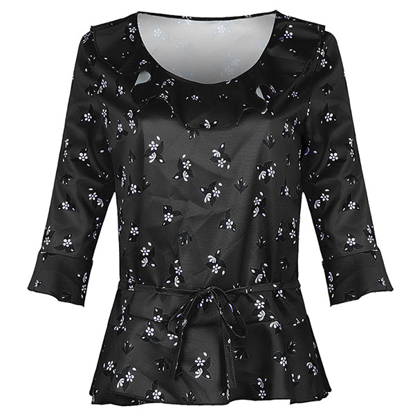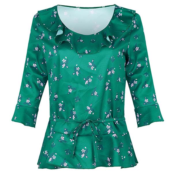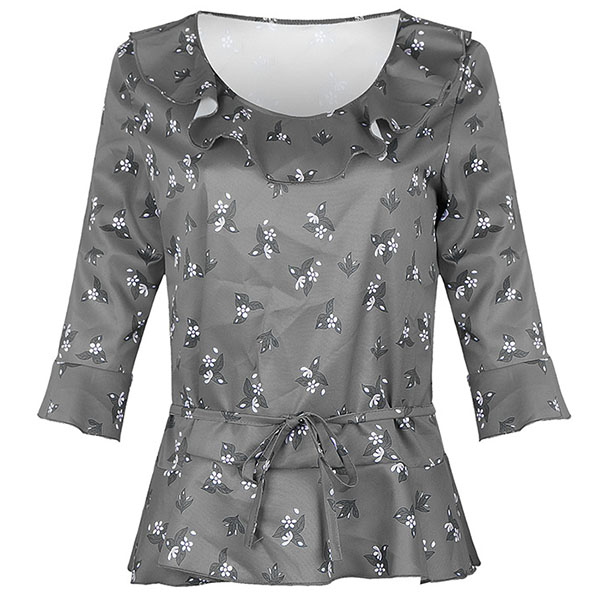 Add a dash of fresh and sweet vibes to your look with this wonderful top. It features chic printed details,with half sleeve,round neck and ruffle design,this piece can keep you cozy while it exudes your style. So why not take interest in it to upgrade your style?