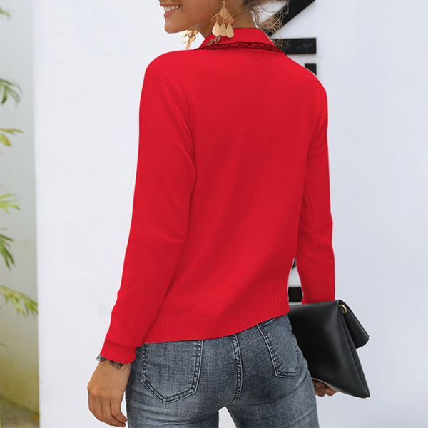 Sweet Style Lace Spliced Doll Collar Long Sleeve Knit Top
