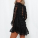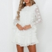Sweet Style Long Sleeve Round Neck Ruffle Hem Dress