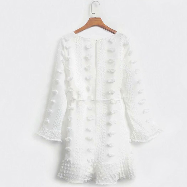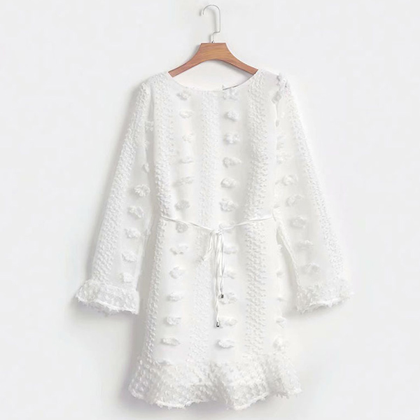 You can have a sweet and charming dating look when you dress yourself up with this dress. It is finished with long sleeve,round neck and ruffle hem design,this dress can easily exude your charm. The thin waist strap design will offer you a more stunning look. So why not introduce it to your wardrobe?