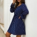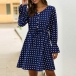 Sweet Style Long Sleeve V-neck High Waist Dots Printed Dress