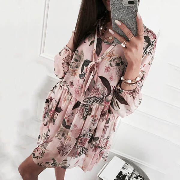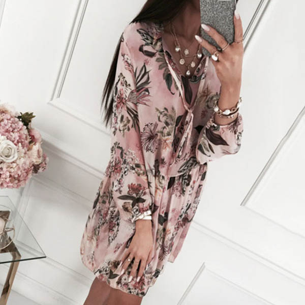 For a sweet and charming daily look,you can just slip into this dress. Features chic and eye-catching printed details,finished with long sleeve,v-neck and a loose silhouette,this dress can keep you feeling comfy while it exudes your charm and beauty.