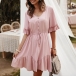 Sweet Style Lottus Sleeve V-neck Ruffle Hem Dress