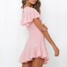 Wanna a sweet and charming dating look? Then let this dress help you. It comes with a sweet pink tone,finished with lotus sleeve and ruffle hem design,which can easily enhance your feminine appeal. Dress it up with your favourite heels and handbag,you can look beautiful enough!