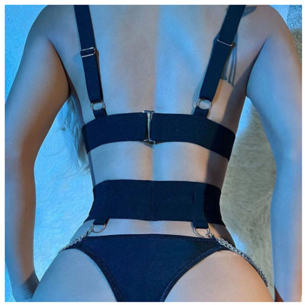 3-delad strumpebandshållare med dekorativa metallkedjor