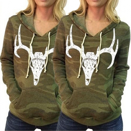 with long sleeve, hooded, front pocket and camouflage printed design, this sweatshirt can