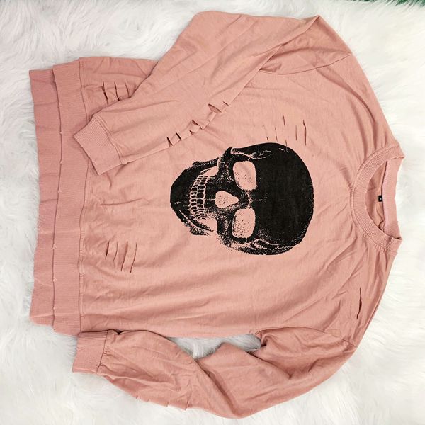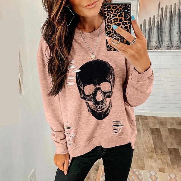 prined with skull pattern and ripped detail at the front for eye-catching and trendy appeal,