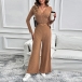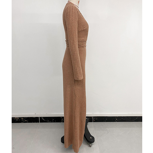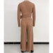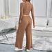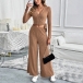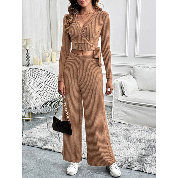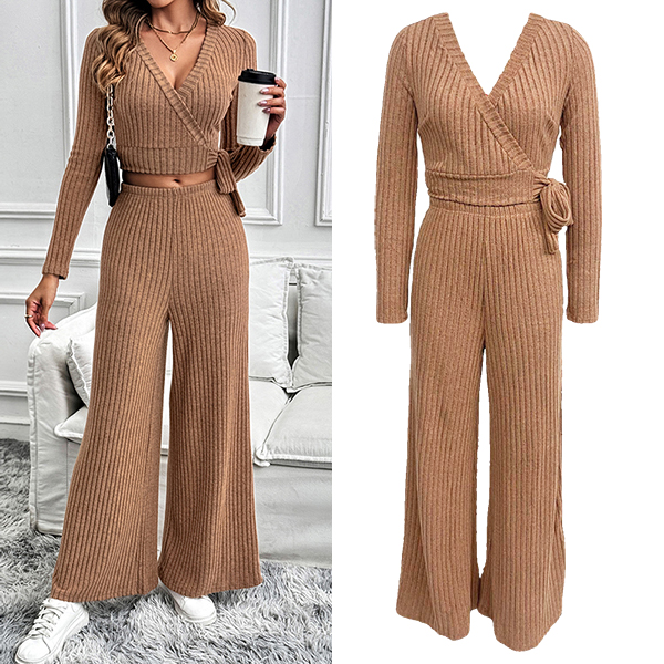 Mysigt stickat tvådelset med enfärgade vardagsbyxor