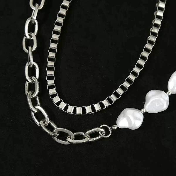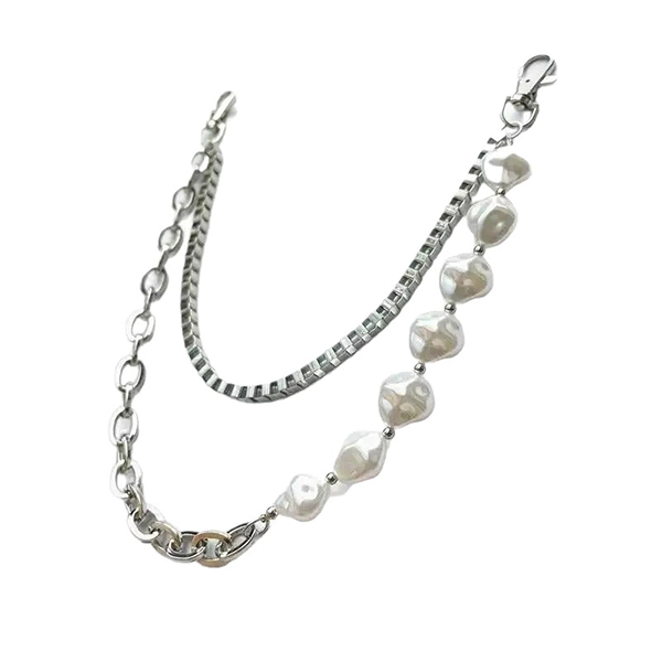 Unisex barock pärlkedja till byxor – dubbellagrad silverfärgad metallkedja för jeans och byxor