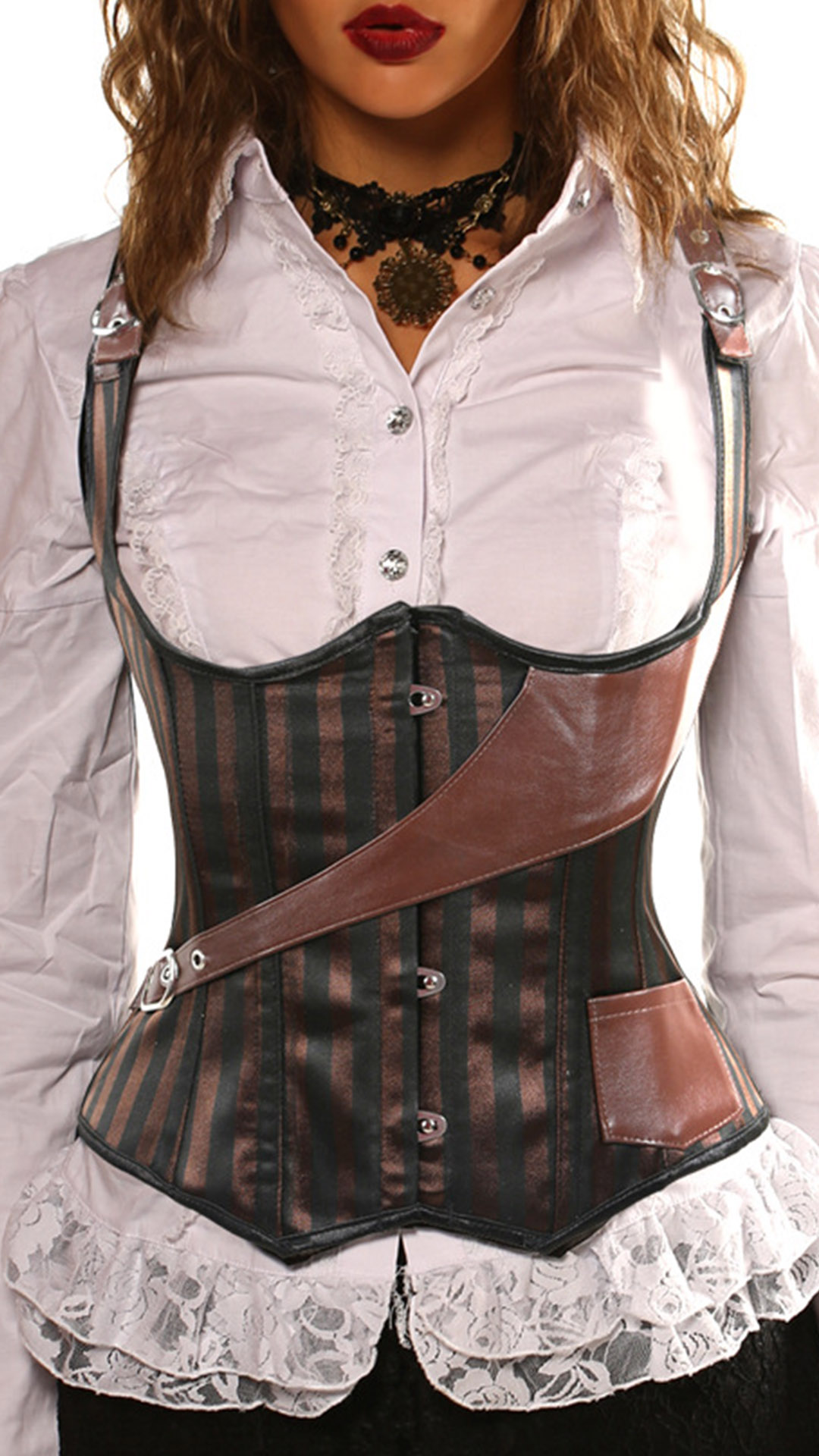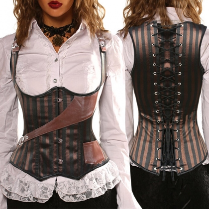 Konstläderkorsett med vintageinspirerad design, tillverkad i tåligt, högkvalitativt konstläder som ger en lyxig look. Den justerbara snörningen baktill skapar en skräddarsydd passform som framhäver midjan, medan stabila stålskenor i överdelen formar och lyfter kroppen. Perfekt för vardag, fest och fotograferingar – ett trendigt sätt att höja din outfit med en tidlös, elegant touch. En iögonfallande statement-pjäs och ett måste för modeälskare som vill kombinera komfort med glamour.