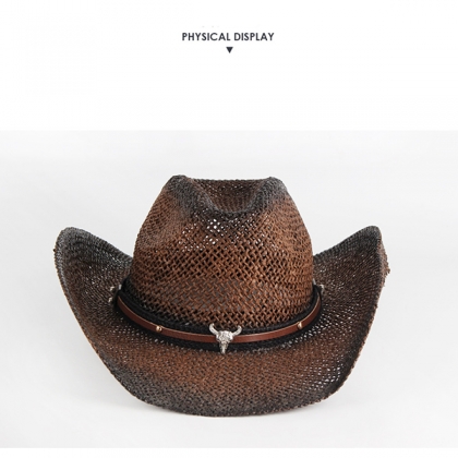Omfamna din robusta sida med vår rustika vävda westernhatt med Longhorn-design.