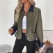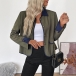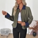 Långärmad vintagejacka i kontrastfärg med ståkrage och framknäppning