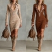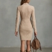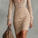 Vintageinspirerad blommig bodyconklänning med broderad knäppning, V-ringning och långärmad modell